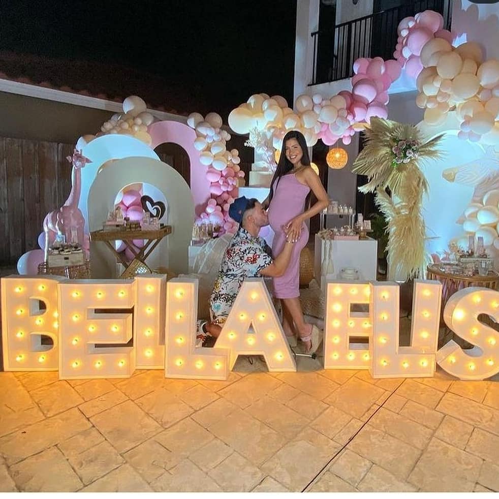 La pareja realizo una pequeña reunión en la ciudad de Miami para revelar el nombre de la primogénita, y a esta asistieron reconocidas estrellas venezolanas como el comediante Marko, los actores Hendrick Bages y Gabriel Coronel.