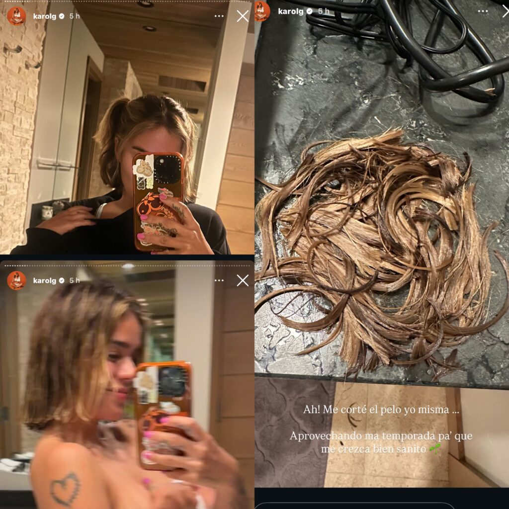 Entre las imágenes, La Bichota reveló que se hizo un drástico corte de cabello durante el viaje. “Me corté el pelo yo misma. Aprovechando la temporada pa’ que me crezca bien sanito”, escribió junto a una foto de su nuevo look.