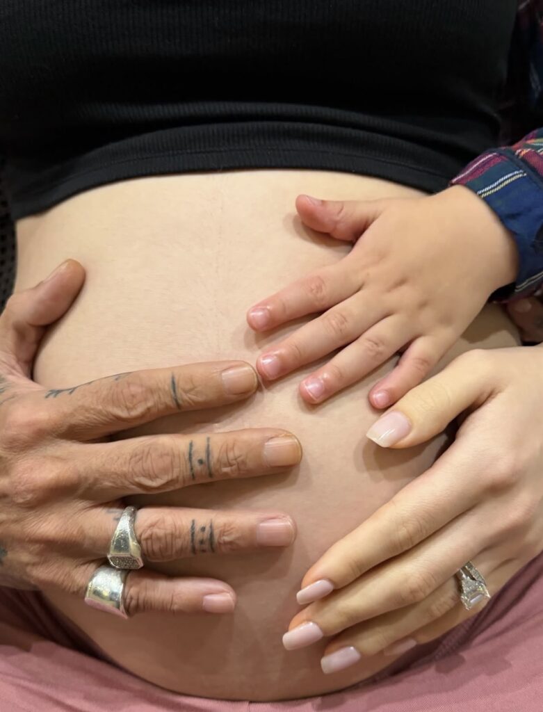 “Happy 3rd anniversary!! Qué regalo tan grande nos da la vida. Dios es grande. Marquito is going to be a big brother”, escribieron junto a una tierna fotografía en la que se ven las manos de ambos y las de su hijo tocando la barriga de Nadia.